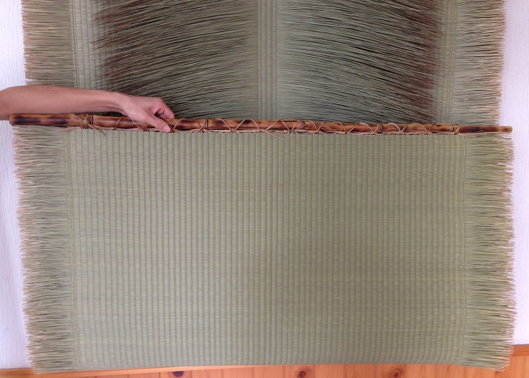 熊本産中継ぎ表が入荷しました。このい草は泥染めしていないい草を使用しています。現在では中継ぎ表はごく一部で織られていますが、この商品はタペストリー(室内装飾用の織物)として生産されています。